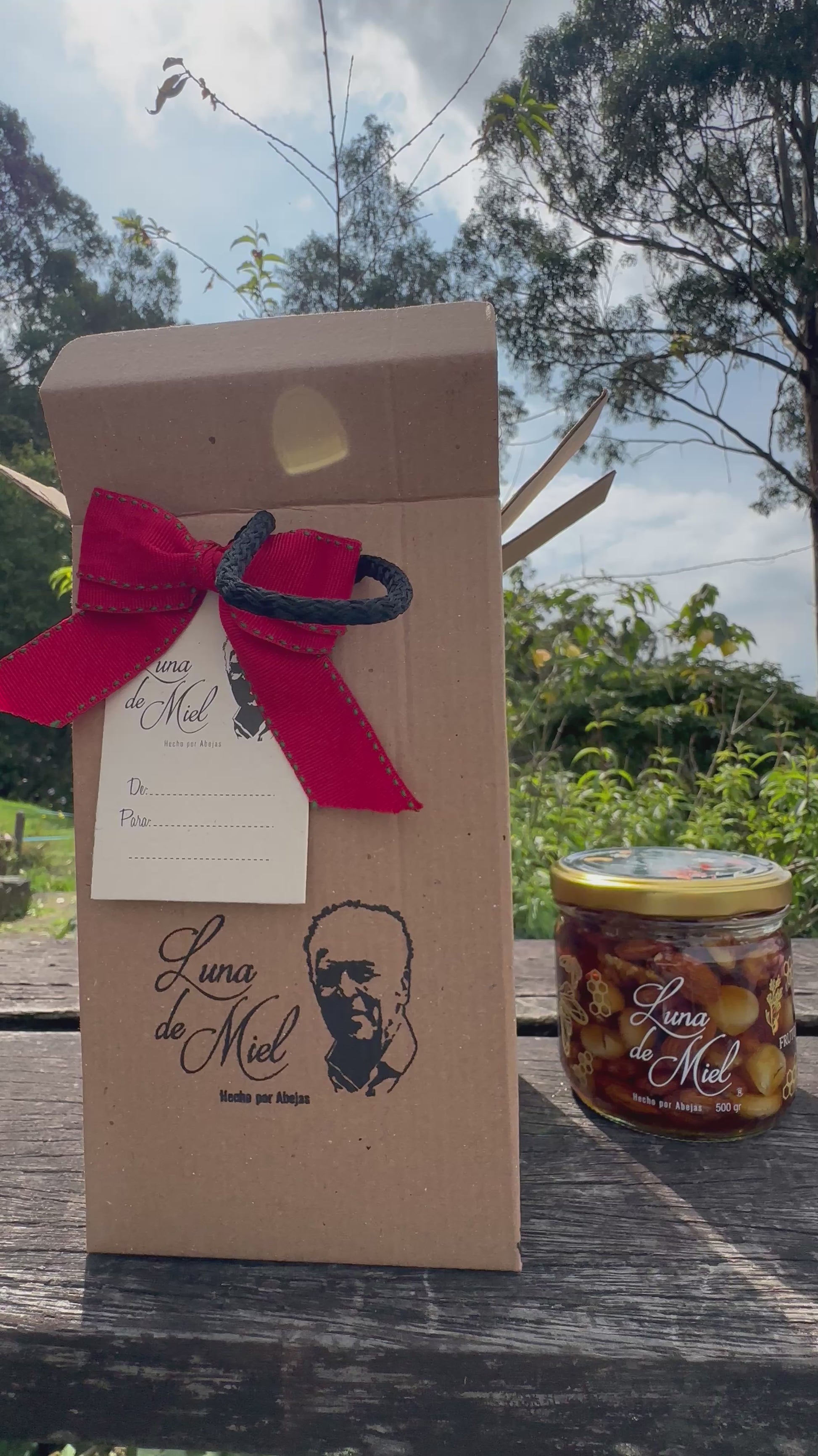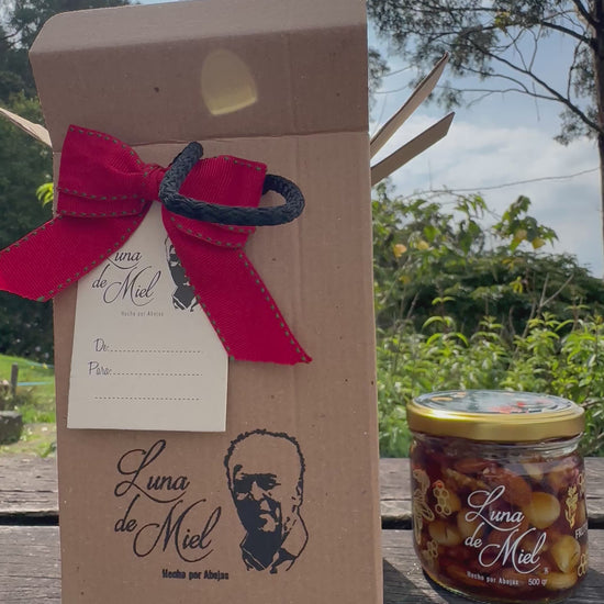 Miel 100% pura combinada con almendras, nueces, macadamias, pecans y marañones premium. La mezcla perfecta entre dulce y crocante.